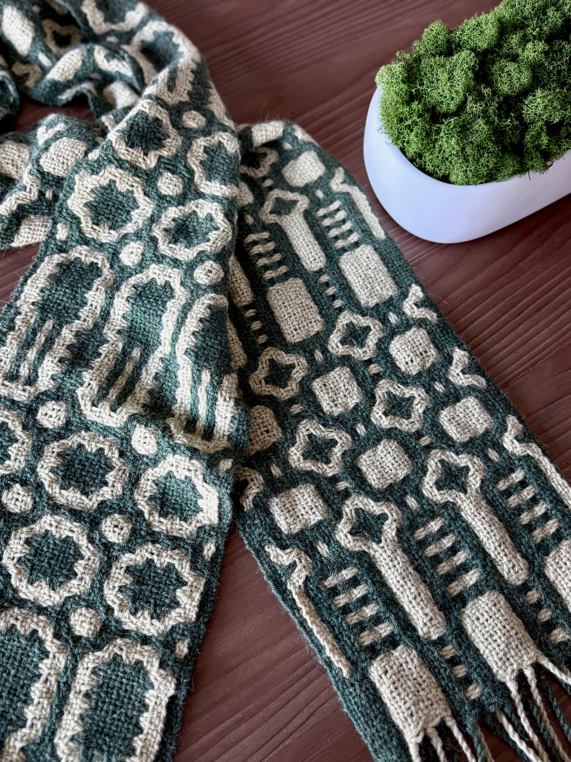 The Keystone Scarf is an advanced 8-shaft weaving pattern that uses the deflected double weave technique to create a bold, two color geometric pattern — unique and equally beautiful on both sides. Woven in Gist Yarn Ode 100% baby alpaca, it is incredibly soft and the drape is exquisite. Pick two colors and weave a statement piece that showcases the magic of deflected double weave!