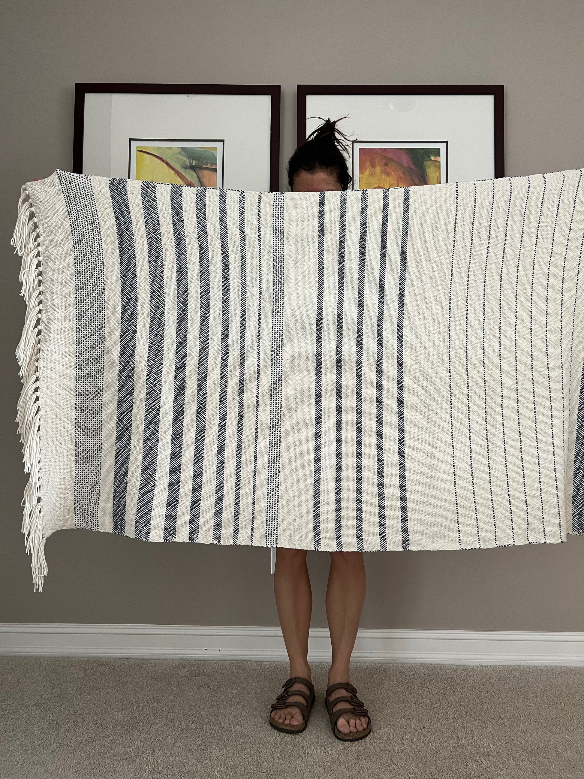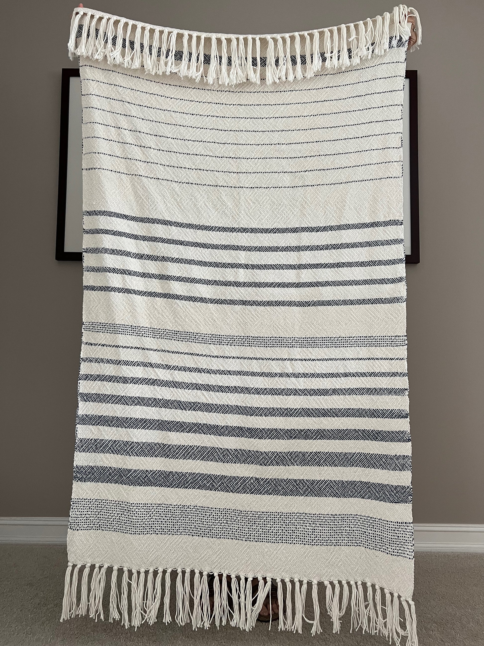 Boho Striped Blanket #4 - Denim/Natural