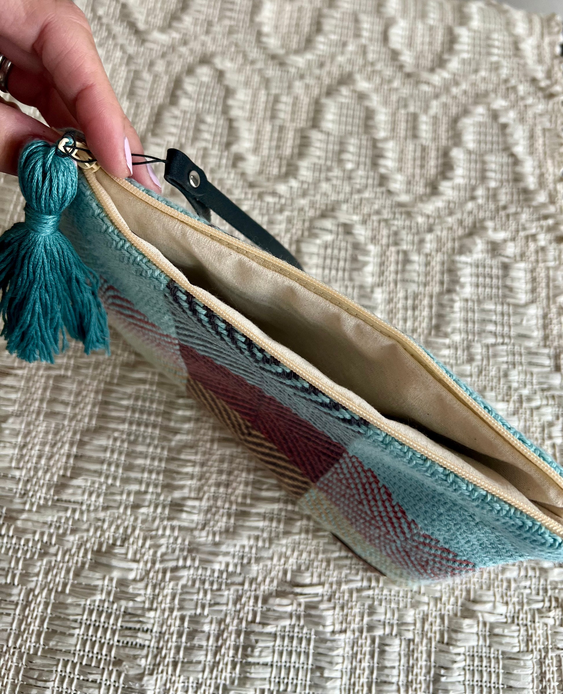 Fully lined with natural cotton, Framework features an 8" zipper closure with a handmade tassel pull and a genuine leather wrist strap for added ease, along with an Otterwoven hand-sewn leather tag. Machine sewn with care to preserve the integrity of the handwoven cloth, it’s designed to hold your essentials while honoring its handmade origin.