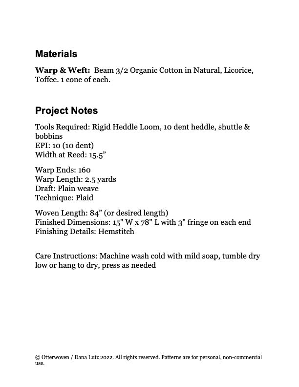 Weave a checked table runner with this PDF download rigid heddle weaving pattern. Suitable for beginners, it uses Gist Yarn Beam 3/2 organic cotton in a plain weave to create a timeless table runner, perfect for all decor styles. Full instructions include recommended yarn, warp color order and threading. Pattern does not include instructions on how to warp or weave on a Rigid Heddle Loom.