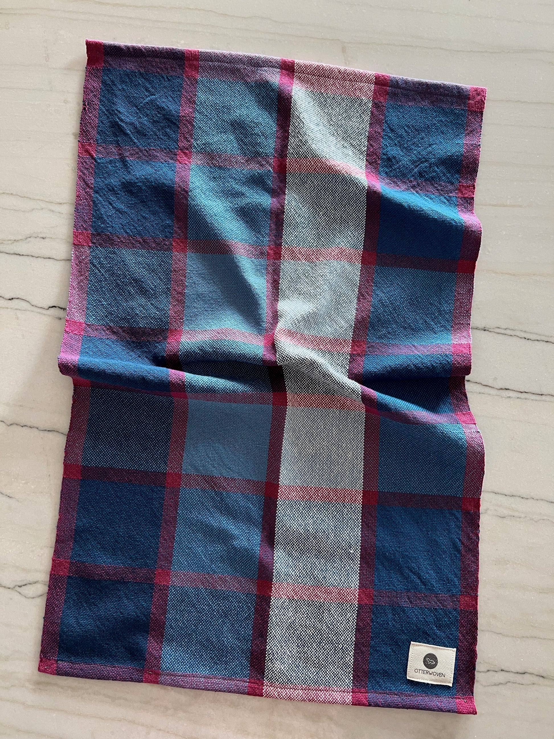 The base of each towel consists of three shades of blue, natural and burgundy. Each towel features a unique stripe combination using a variety of those colors, however exciting new shades emerge as the weft crosses the warp threads. Use them as hand towels, to dry dishes, or put them on display - either way these tea towels are sure to become your new favorite kitchen essential.