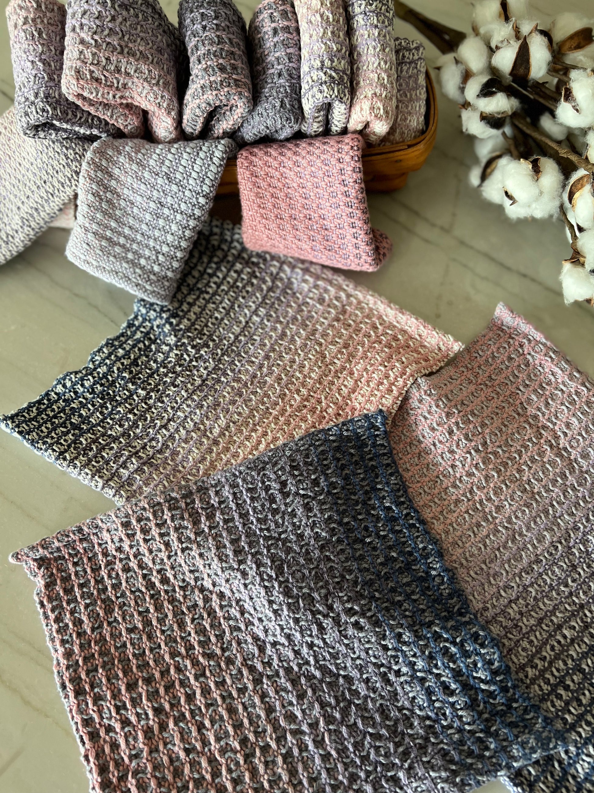 The Waffle Weave Spa Washcloth collection features a classic waffle weave pattern in a beautiful soft gradient, including blues, purples and pinks.